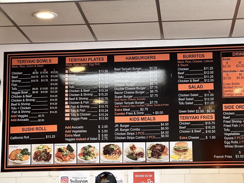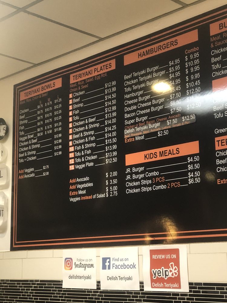 Delish Teriyaki Charbroil & Burgers Menu